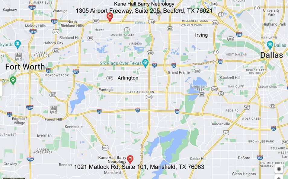 Kane Hall Barry Neurology - Mansfield 1021 Matlock Rd STE 101, Mansfield, TX 76063 Kane Hall Barry Neurology - Bedford 1305 Airport Freeway, Suite 205, Bedford, TX 76021 |